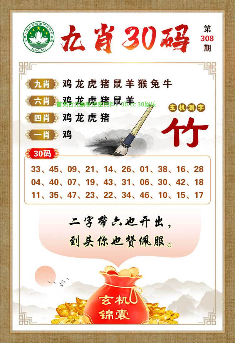 308期:【绝杀二肖】〖鼠牛〗开:兔39准